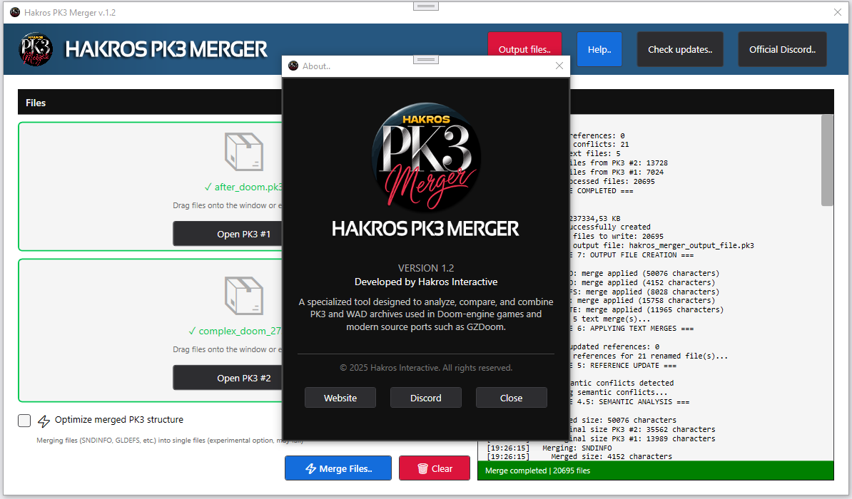 I have created this Windows application , it is a specialized utility tool designed for managing and merging PK3 files used primarily in the Doom family of games, including Doom, Doom II, Hexen, Heretic, and modern source ports like GZDoom, Zandronum, and LZDoom. PK3 files are ZIP-based archives that contain game assets such as textures, sprites, sounds, music, maps, and scripts/code.
