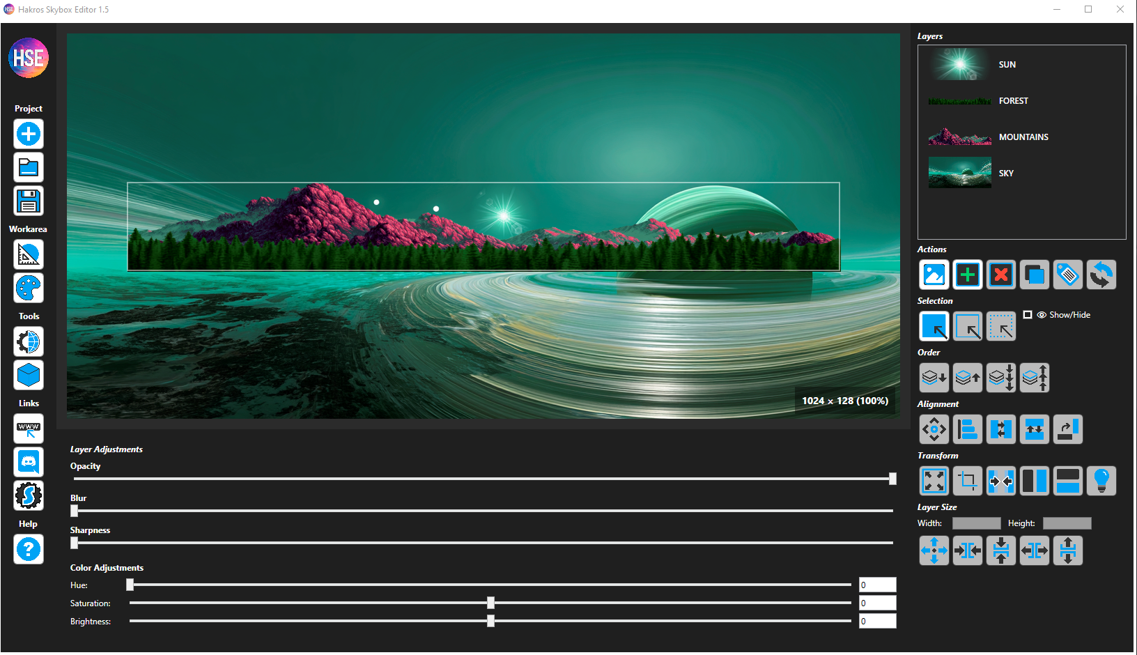 Hakros Skybox Editor (HSE) has been designed as a complete creative environment for building both panoramic and cubic skyboxes, static or animated, through a fully visual workflow. It brings together precise control, performance, and simplicity, offering modders and artists a modern and polished interface to work with.