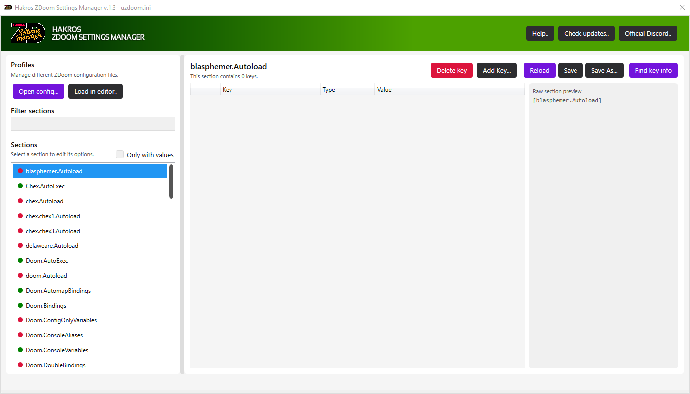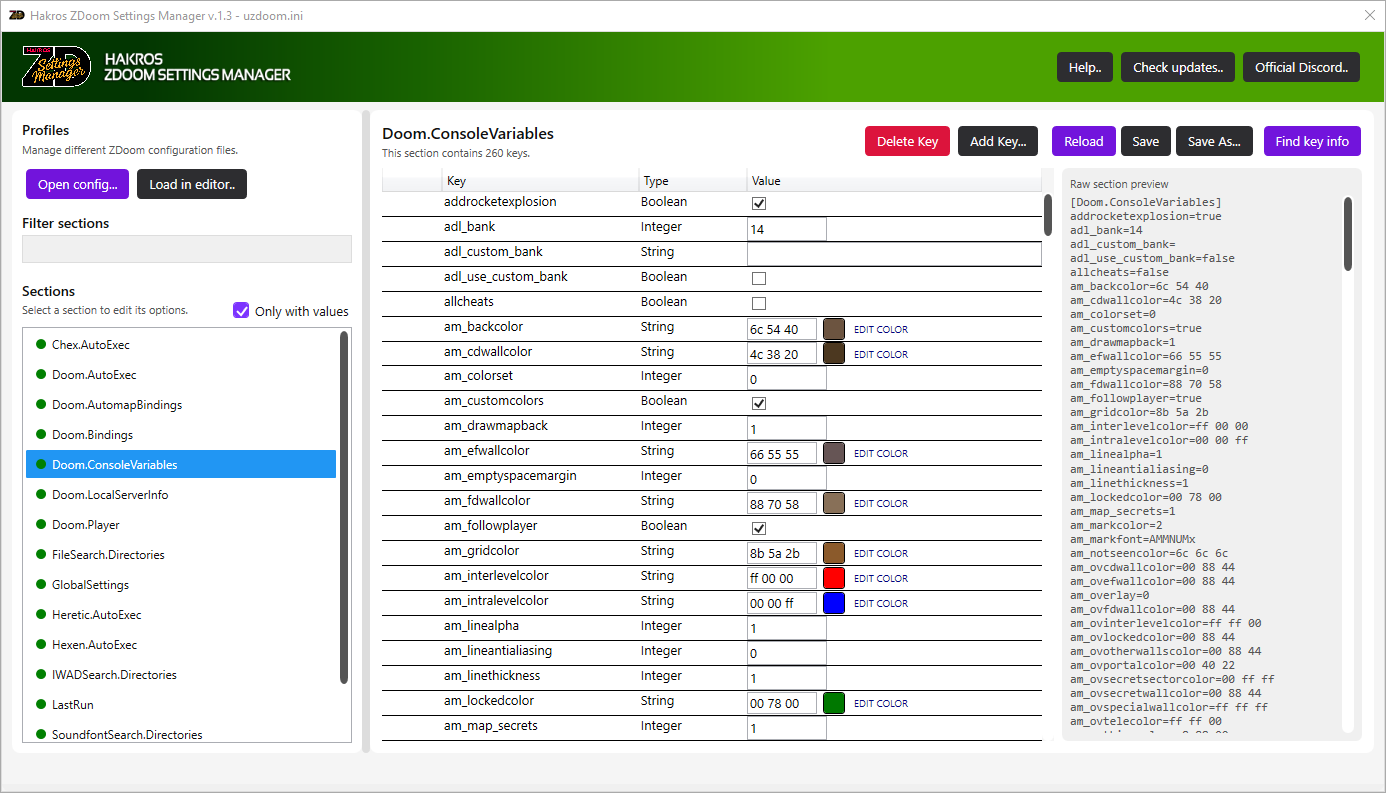 Hakros ZDoom Settings Manager (GZDoom, UZDoom, LZDoom, Zandronum and compatible engines)